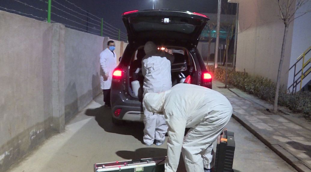 李雪(中)在营东隔离病区指导防护
