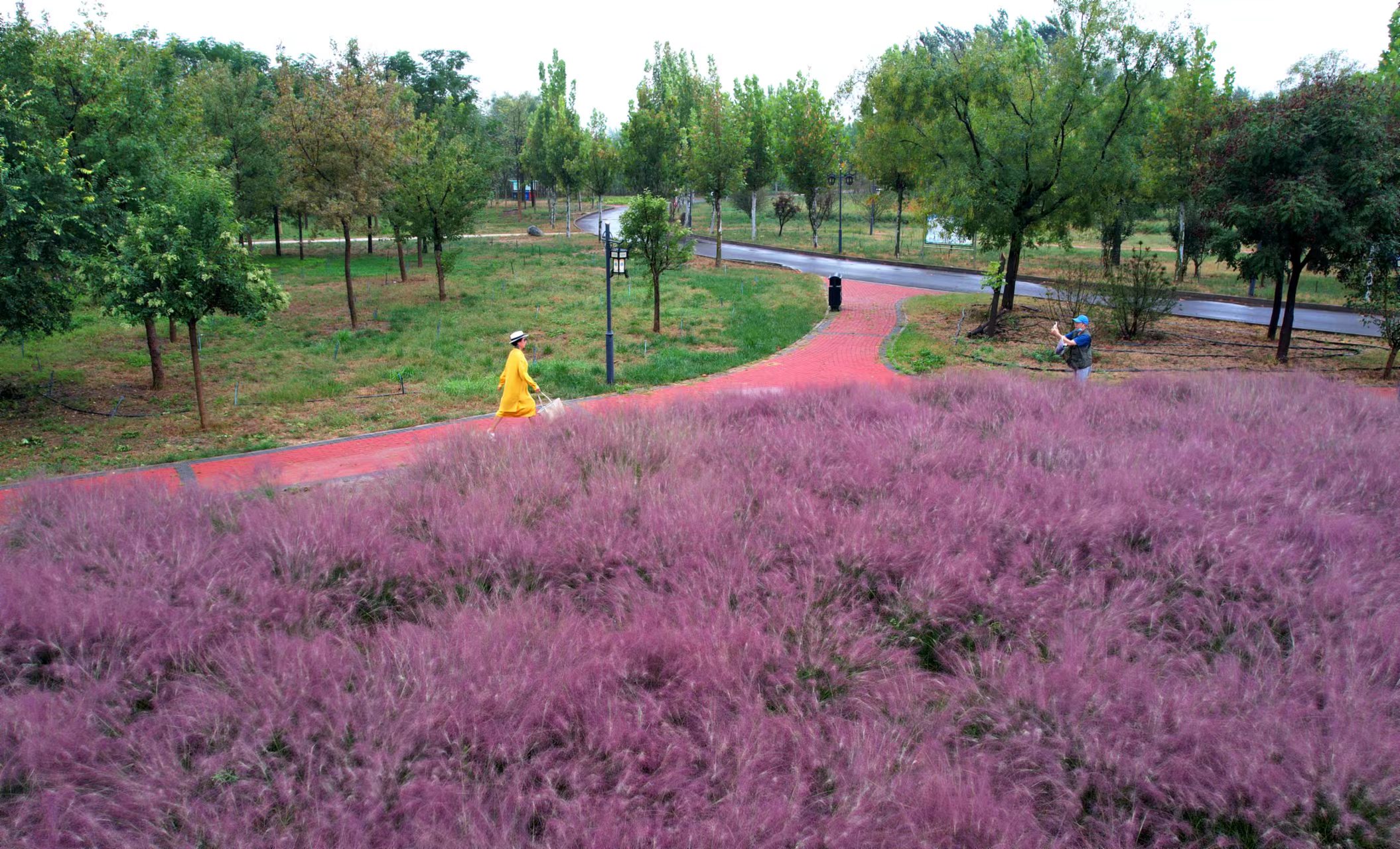 衡水主城区宝云公园粉黛乱子草进入盛花期 梦幻粉“圈粉”无数