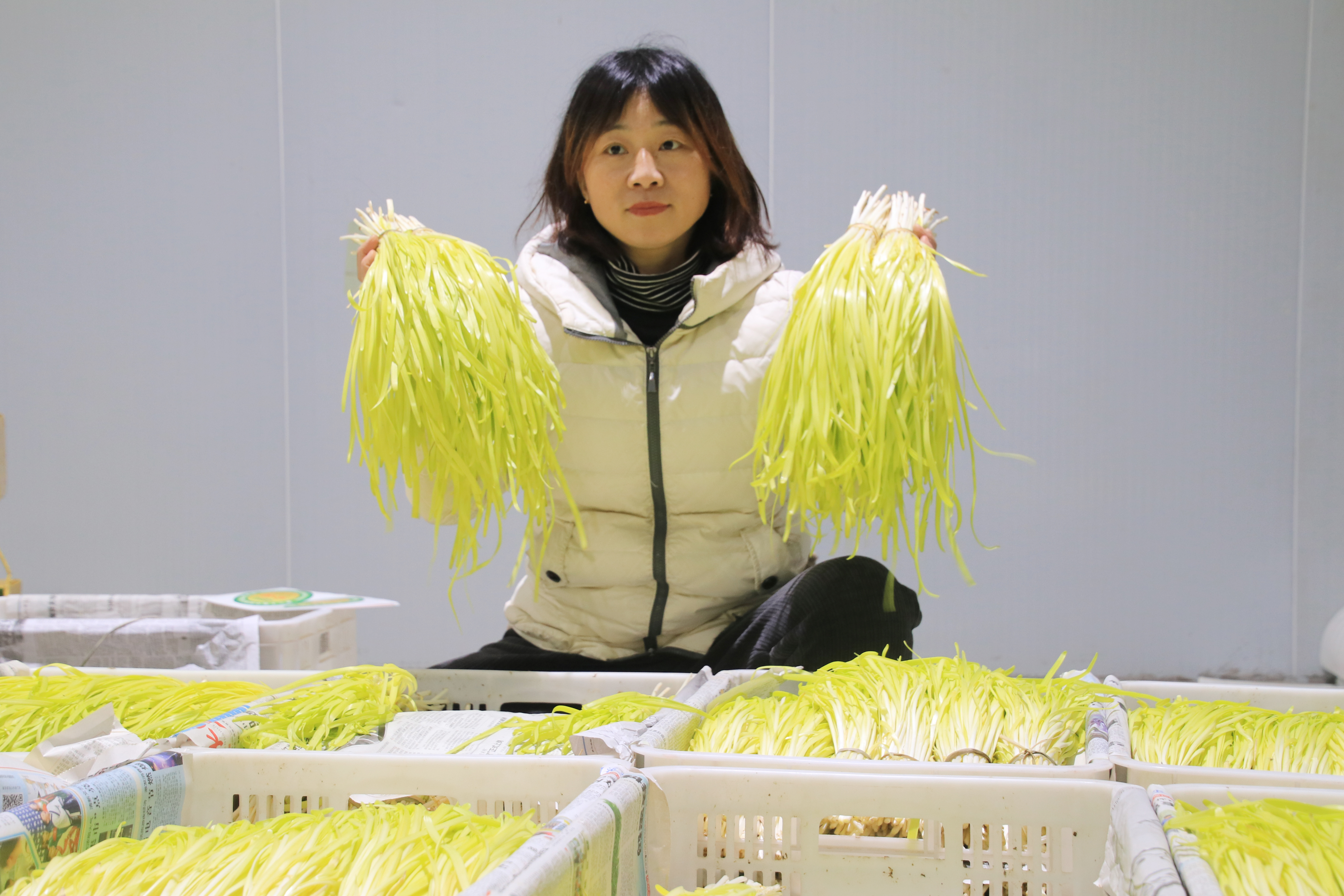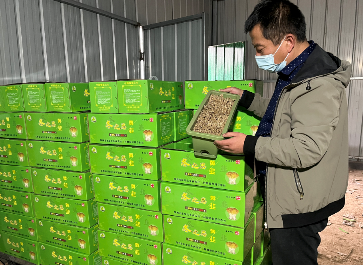 “马上过年了,市场需求旺,春节前的订单基本抢空了。1月初开始,基本当天收割当天发货,每天往外发600余箱,天天忙得脚不沾地儿。”薛丹边麻利地装箱上车,边笑呵呵地说着。“合作社600亩黄韭基本收割完毕,主要以年货礼品方式销往全国各地。”