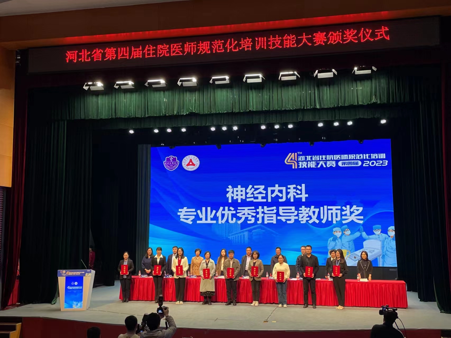 哈院党委注重住院医师规范化培训,以推动住培质量持续稳步提升,为健康衡水贡献更多哈院智慧和哈院力量。2023年4月9日,韩敬哲在河北省第四届住院医师规范化培训技能大赛上,荣获神经内科专业优秀指导教师奖。
