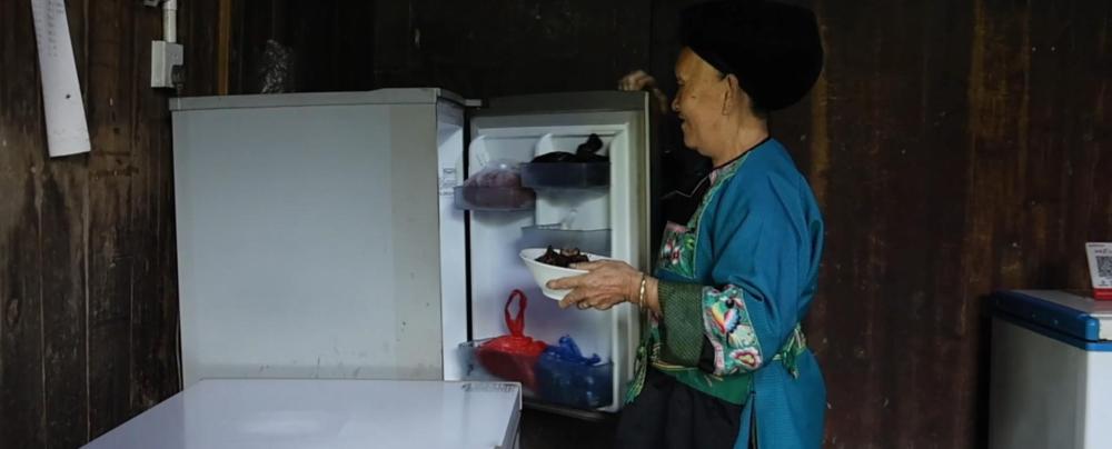 如今,青石板路通到了家门口,家里液晶电视、冰箱、电饭煲等家用电器一应俱全。