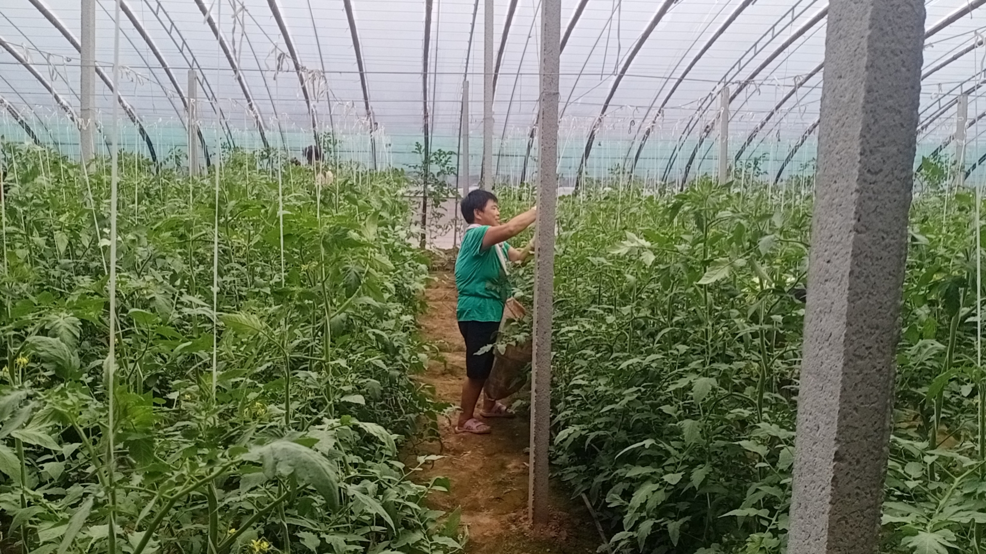 苗场一派欣欣向荣,大棚里同样生机勃勃。今年3月份,韩恩卫的温室甜瓜喜获丰收,每亩4000公斤左右的产量和每公斤6元的批发价,让他获得了不错的收入,也为这一季的西红柿种植赚来了成本。8月初,短暂休整过后的温室,迎来了新一轮栽种,随着一株株西红柿苗被整齐种下,韩恩卫与工人们又投入了紧张的忙碌中,施肥、浇水、打杈、时刻关注天气变化,注意放风透气,“照顾幼苗就跟照顾小孩子一样,可得尽心尽力。”韩恩卫说,如今,经过一个半月的精心照管,韩恩卫的秋茬西红柿长势喜人。绿油油的枝蔓下,是朵朵金黄色的小花,工人们穿梭其间,忙着授粉。再有一个月,这茬西红柿就能成熟上市了。“丰收节马上到了,我的西红柿也快要丰收了。”韩恩卫乐呵呵地说,他期待着迎来今年第二个丰收季。