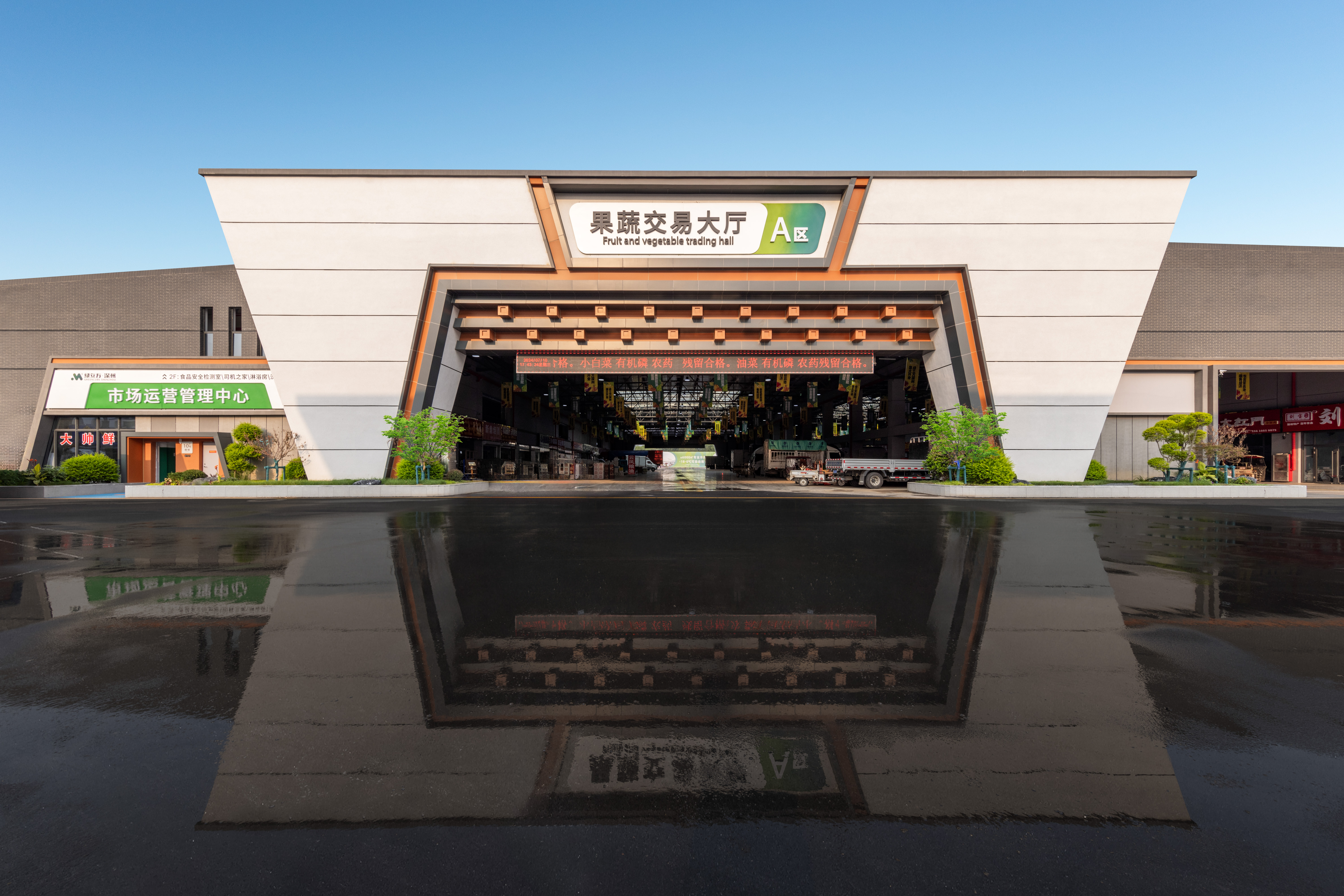 在王欣乐看来,A区之所以受欢迎,原因有二:一是“颜值”高,市场建筑和商铺采用高标准建设,分区合理,前后双向开门的设计增加了实用性,完善的物业服务也保证了市场的整洁度。二是科技赋能,引入先进的智能溯源和智慧结算系统,为每件农产品赋予专属“身份标签”。消费者购买时自动称重,购买后只需扫码,便能清晰了解到商品检测和售卖信息。这种透明化的信息展示,极大地增强了消费者的信任,让大家买得放心、吃得安心 。