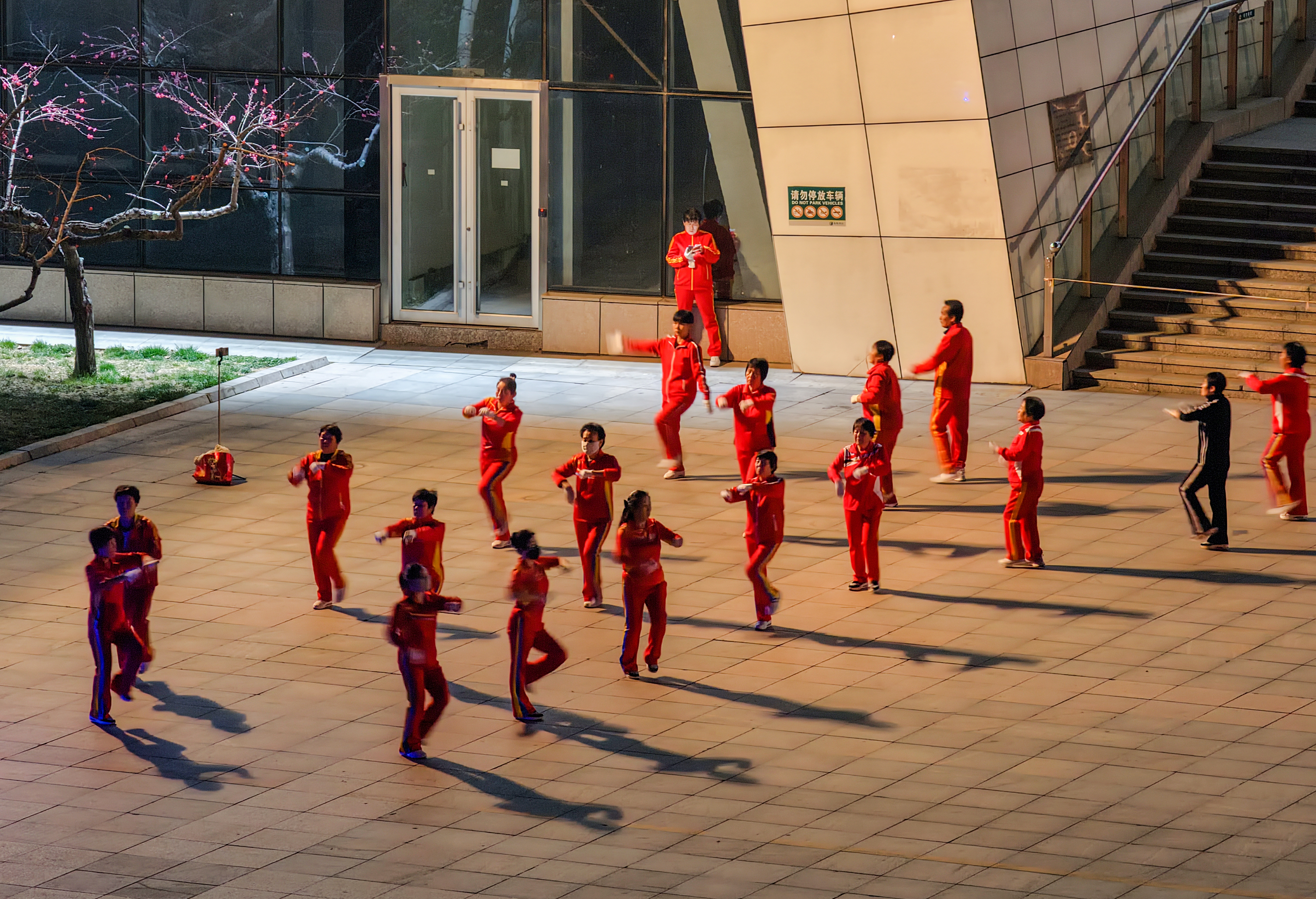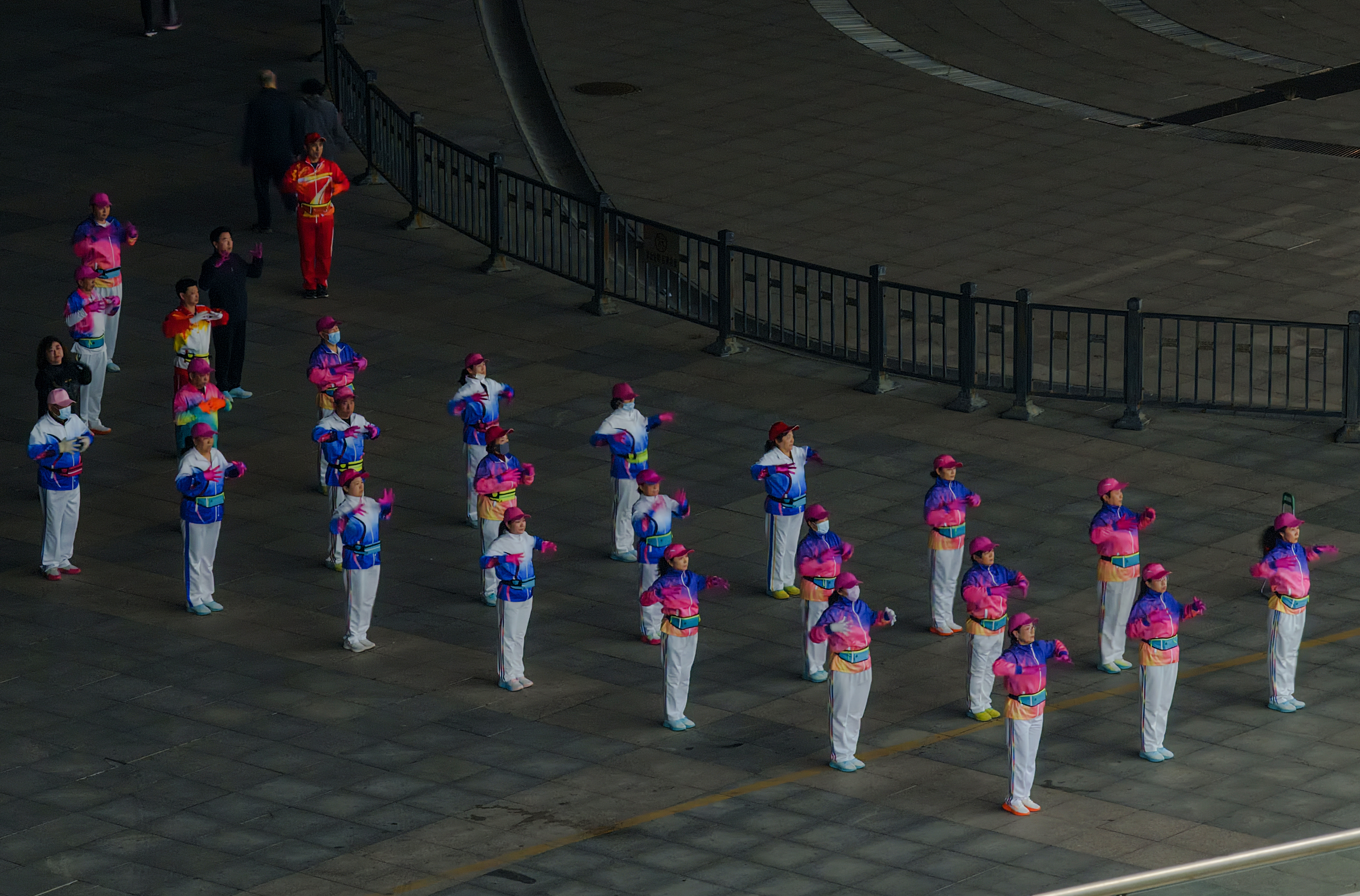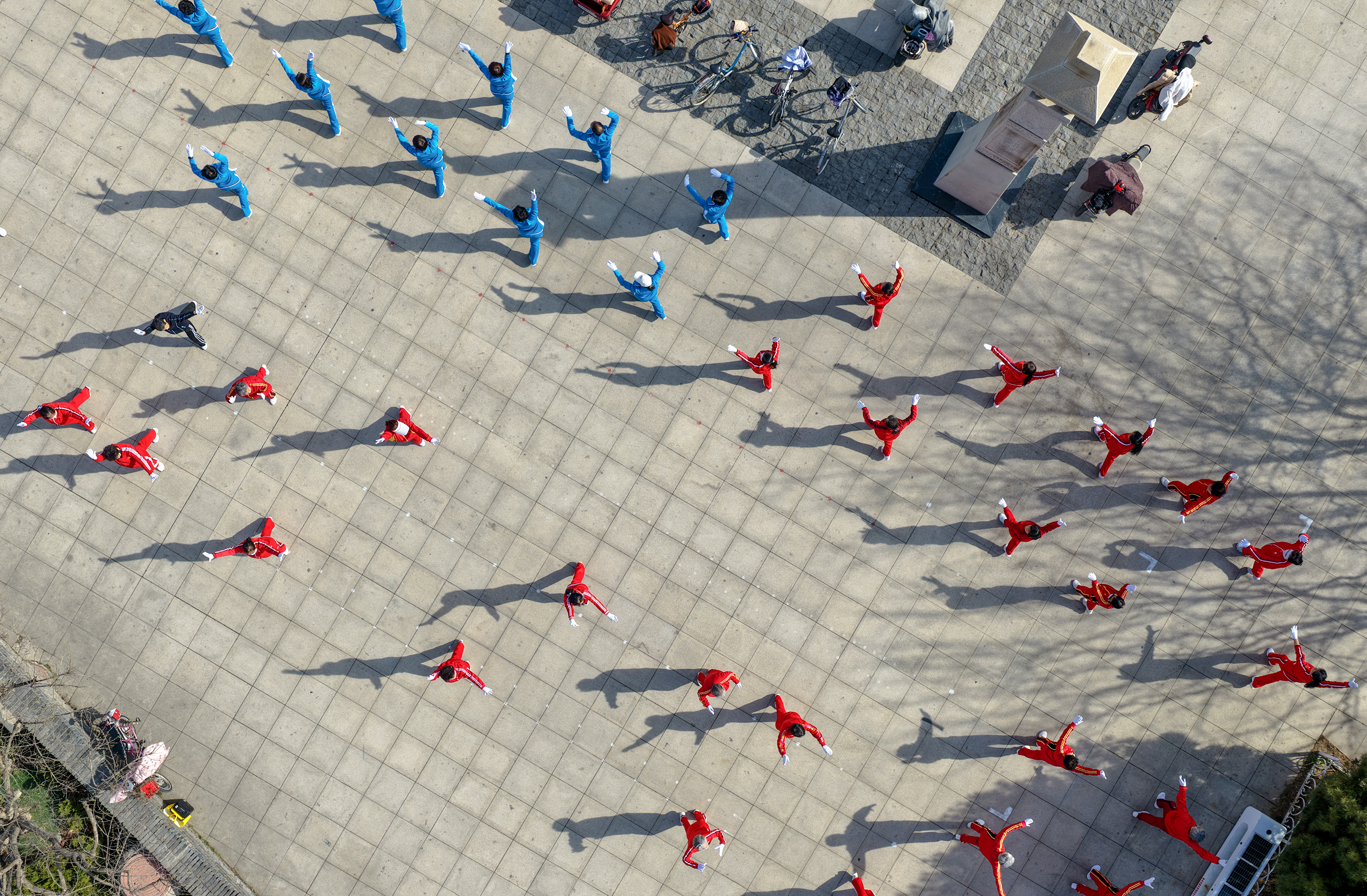 从晨光熹微到夜色降临,不同年龄段的健身爱好者齐聚一堂,整齐的动作、昂扬的精神,勾勒出城市全民健身的生动图景。