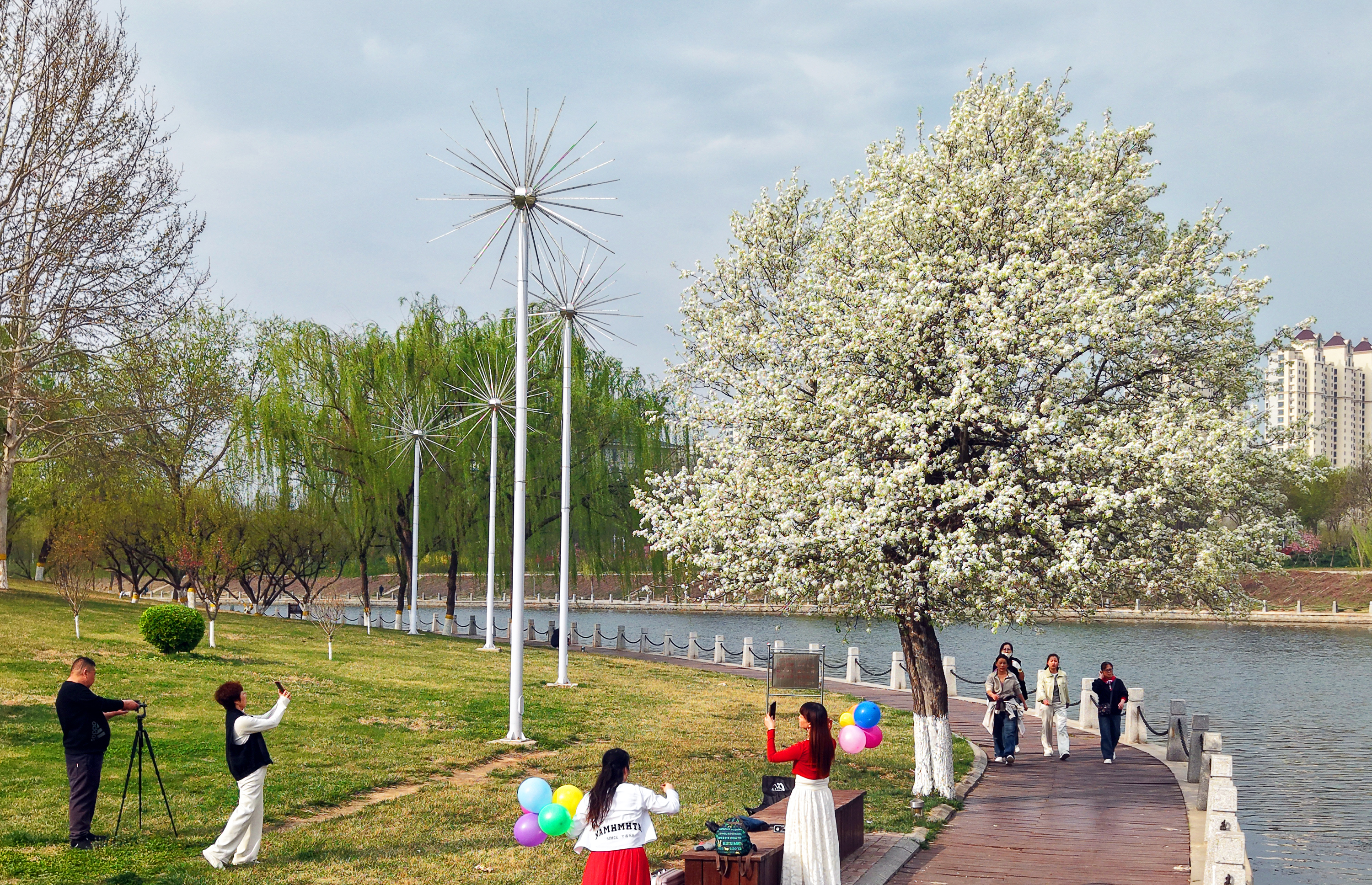 杜梨树下,热闹非凡、人气十足,前来打卡拍照的市民络绎不绝。“刷抖音刷着这棵杜梨树了,就赶紧拉着家人过来了,你看这满树的白花,拍出来真好看,随便找个角度都出片!”市民李女士一边帮孩子整理衣角,一边笑着念叨。前来的市民纷纷拿出手机、相机,琢磨着最佳拍摄角度,只为定格这春日里的好景色。不少市民特意搭配了服饰,在花树下摆着各种姿势,脸上笑开了花,与盛放的杜梨树相映成景,定格下人与自然和谐相处的美好瞬间。还有市民随口说道:“这棵树被市民们称作‘孤独的树’,却带来了三季美景与欢乐。在这里既能欣赏自然风光、感受自然气息,日常散步也多了几分惬意,为大家的休闲生活增添了不少乐趣。”
